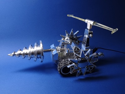 「あのー、本当にペーパークラフトなんですか?」と質問を受けたので、ドリル戦車を実際に手にとってもらい、予想外の軽さで「おぉおおおー!」という叫びと共に納得してもらいました。片面段ボールで作ったクローラーをロボットマンにも装着して動かせること、ドリルを尖らせて回転の向きをロボットマンに合わせてあることなどをその場で説明すると、「狂っている…」という最高の賛辞もいただきました。対面でやり取りできることの恩恵が感じられる晴れ舞台でした。